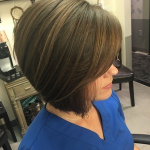 Amber has been doing my hair for 10 years and I have never been disappointed. I keep her challenged with the many changes I like and luckily for me she thrives on those challenges. She has never let me go with something that would not suite me or my face shape. You will not be disappointed with Amber.